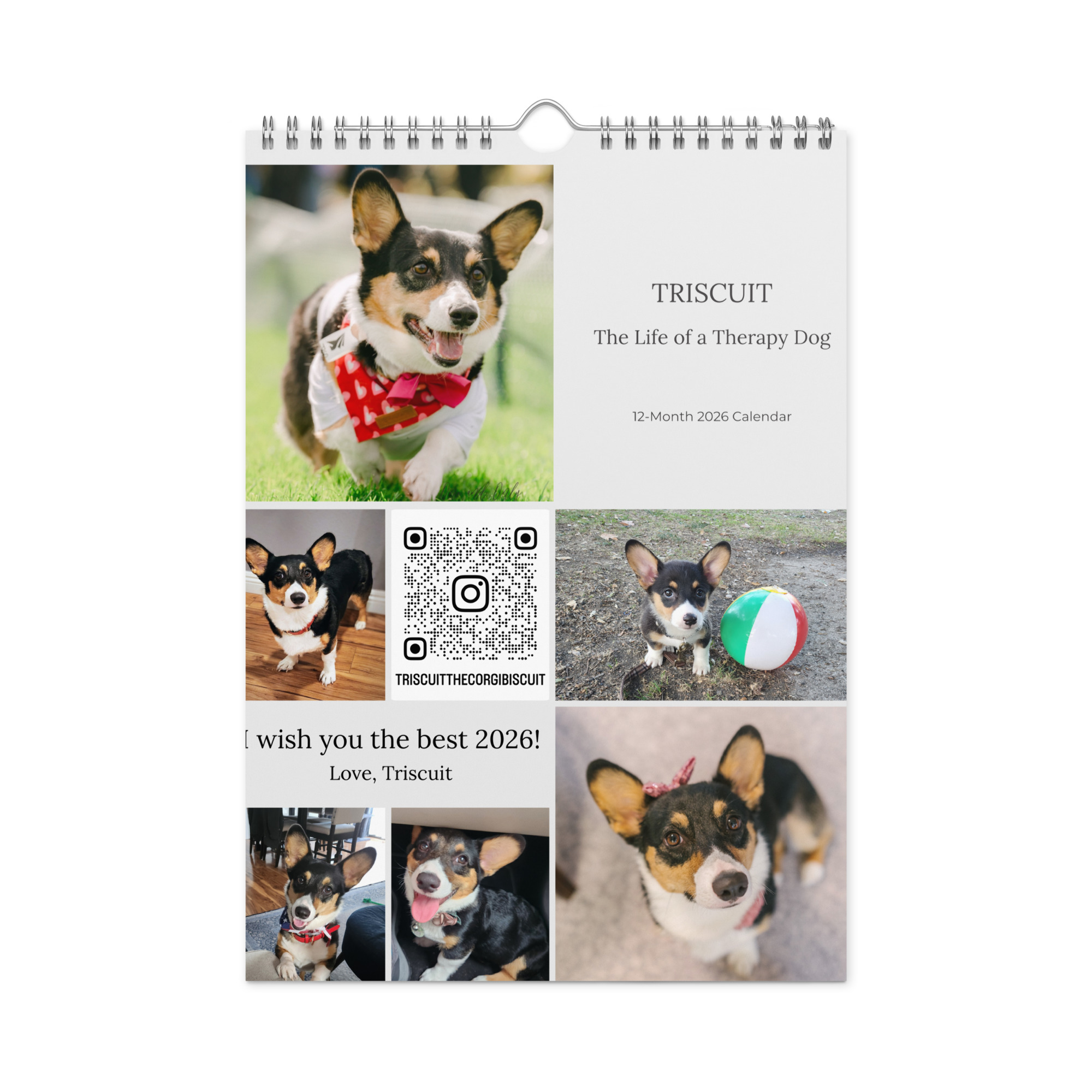 Every calendar helps support Triscuit’s volunteer visits throughout our local community. Your purchase helps cover travel, supplies, and the ongoing costs of her work bringing comfort, joy, and connection to people of all ages.